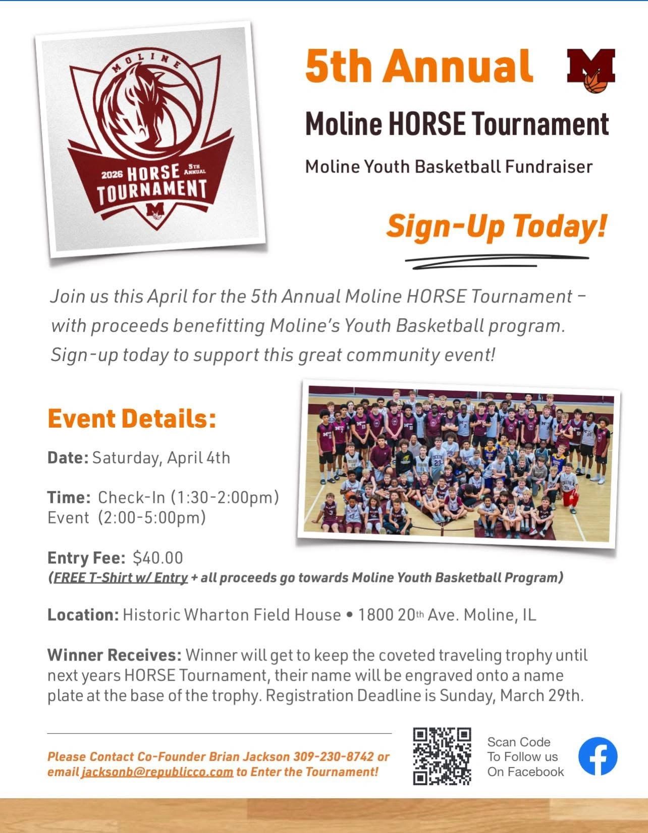 We are fast approaching the next HORSE tournament and we will sponsor the entry fee for up to 5 Moline Students.